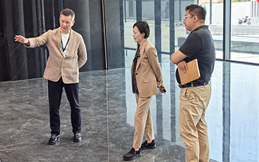 3月21日,桃浦鎮黨委書記吳晨海在新金環集團中鑫智谷接待廣西北部灣國際港務集團副總經…